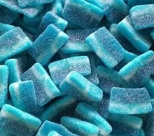 1. Sucre, Sirop de glucose, eau, amidon de maïs, gélatine de boeuf, acidifiants : acide citrique, acide malique, arômes, régulateur d'acidité : citrate de sodium, colorant E133.