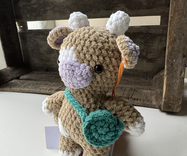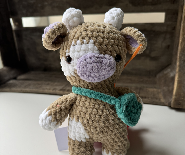 petite vache, en laine, velours, avec rembourrage anti allergène, crocheter avec amour par mes propres soins .☺️🥰