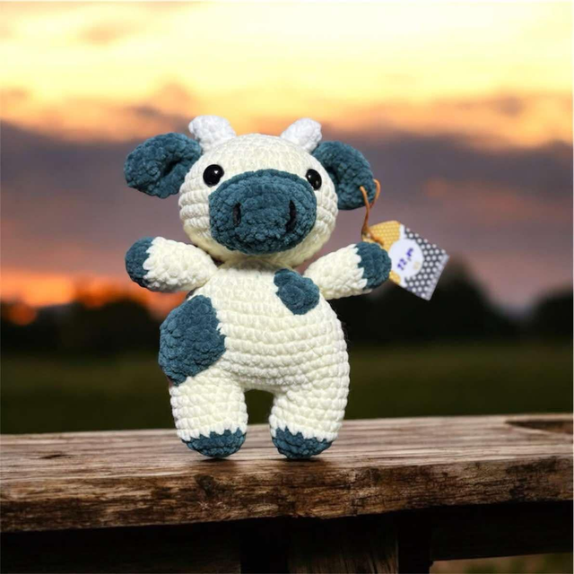 vache, Crochet avec amour, couleur crème et bleu 🐮