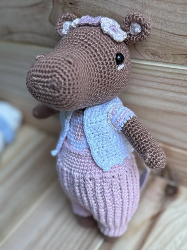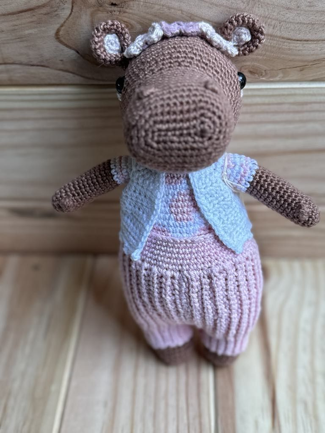 Hello je suis un hippopotame, je suis réaliser en coton avec du rembourrage anti allergène.