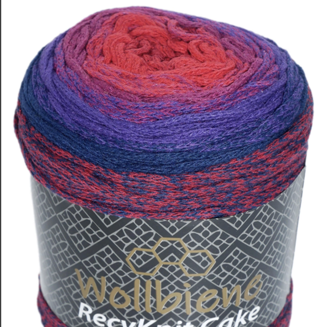 Wollbiene Recyknit Cake bleu foncée rouge 250g dégradé de couleurs